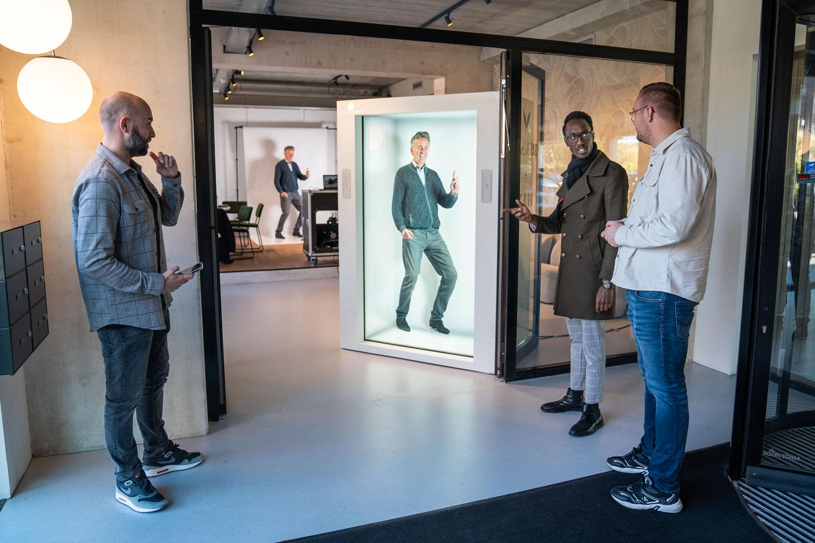 Holobox là thiết bị trình chiếu hologram cho phép hiển thị Digital Twin ở kích thước thật. Khách hàng có thể đứng trước một “người” đang nói chuyện, chỉ dẫn hoặc thuyết trình – mà không có ai ở đó. Những yếu tố giúp Holobox khác biệt: