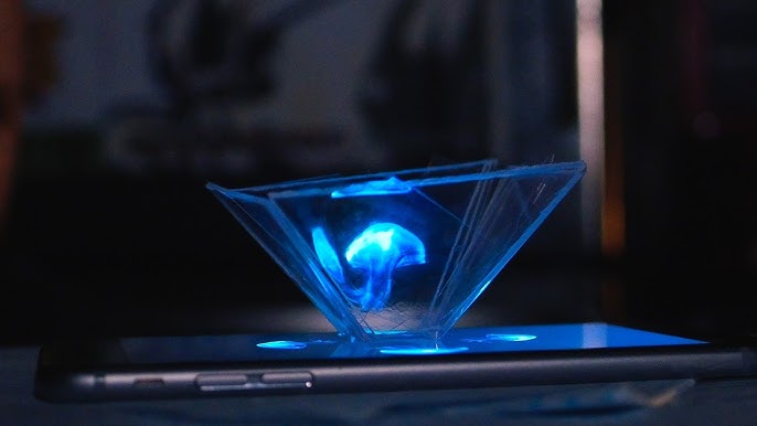 Đặt mô hình này lên màn hình điện thoại đang phát video hologram.